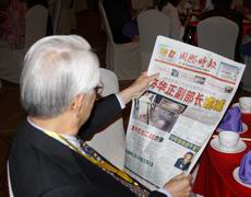 一名河婆乡会代表在空闲的时间翻阅报章。