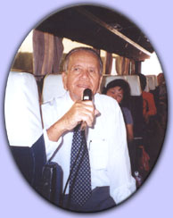 砂劳越河婆同乡会会长刘汉水在旅途中为同乡讲解河婆典故“三山六约” 2001年3月28日 |